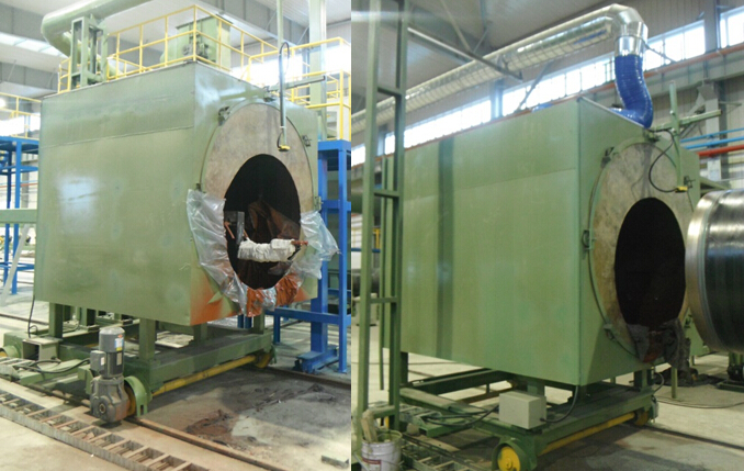 功能描述:內(nèi)減阻噴涂系統(tǒng)包含噴涂車、噴涂伸臂、噴涂系統(tǒng)(GRACO 高壓無氣噴涂泵)、噴涂前倉、轉(zhuǎn)管裝置(或轉(zhuǎn)管車)、噴涂后倉等。鋼管內(nèi)壁除銹檢測合格后,鋼管轉(zhuǎn)到內(nèi)噴涂工位,前后倉將鋼管兩端密封,鋼管旋轉(zhuǎn)。噴涂車推動噴桿前進(jìn),電磁閥打開高壓空氣對鋼管內(nèi)壁進(jìn)行吹掃,將吸附在鋼管內(nèi)壁上的微塵及殘留的鋼砂吹走直到鋼管的末端,電磁閥關(guān)閉停止吹氣。噴涂泵啟動待噴霧均勻后,噴涂車開始倒退將涂料均勻的噴涂到鋼管內(nèi)壁上。