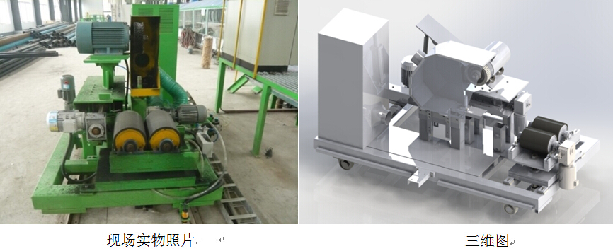 功能描述:管端打磨包含兩臺端頭托管、兩臺端切小車以及其它氣、液動、電動控制系統(tǒng),實芯光面輪胎支撐,電機帶動端頭托車微調保證鋼管轉動的平穩(wěn)性,高速旋轉的鋼刷在端切小車的驅動下順次將管端防腐層刷除,高效運行的除塵系統(tǒng)將鋼刷切下的塑料微塵吸走,保證工作環(huán)境的整潔。